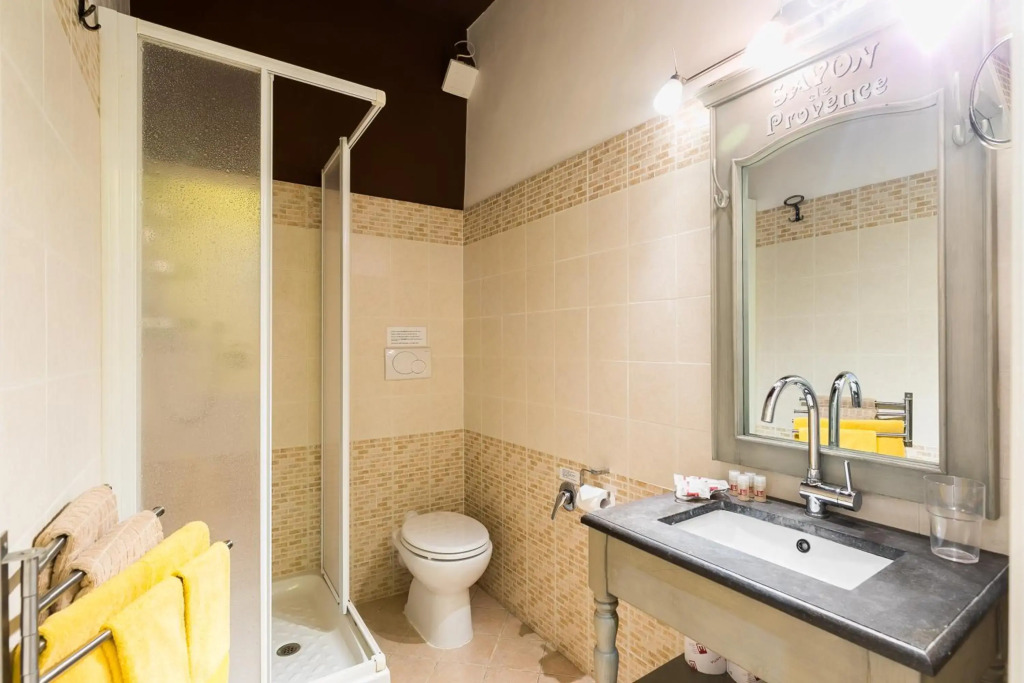 In the room, there is a shower and a TV. Please note that the listed services may not be available in all the rooms.