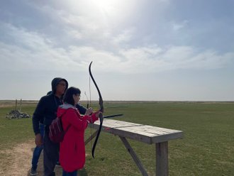 17:30. A visit to the Bumba Country caravan camp, Acquaintance with the objects of Kalmyks' everyday life, their entertainment and rituals, meeting with four types of traditional Kalmyks animals: camels, horses, cows and sheep. During the immersive tour, you can take photos in Kalmyk costumes and military armor, shoot arrows, practice lasso throwing and much more.