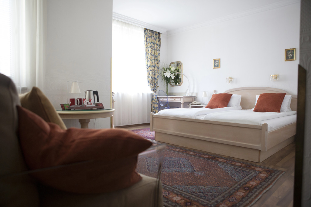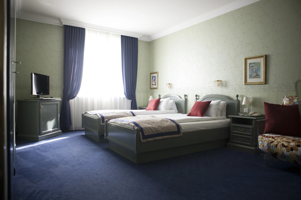 The room is warmly decorated and has everything you need to have a rest after a long eventful day. There is a TV and a mini-bar. The room equipment depends on its category.