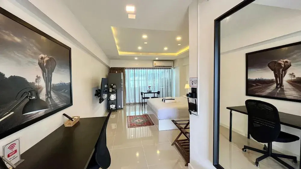 A perfect fit for a big group of travellers: apartment «Partial Seaview Studio on 11 Floor Near Jungceylon, Bangla Street» is located in Patong. This apartment is located 1 km from the city center. You can take a walk and explore the neighbourhood area of the apartment — Patong Beach, Tiger Kingdom Phuket and Kathu Waterfall.