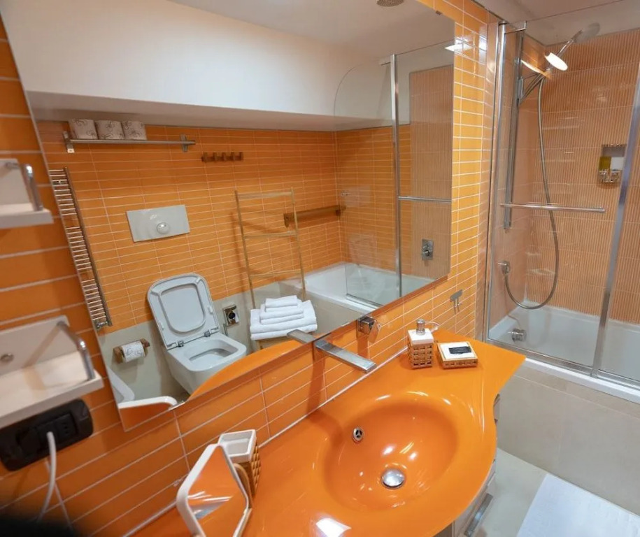 In the room, for you, there is a shower, a TV and a mini-bar. Please note that the listed services may not be available in all the rooms.