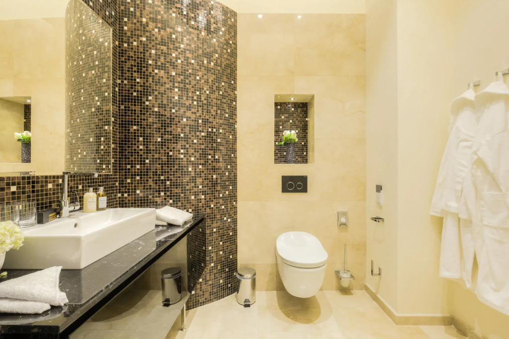 The room is warmly decorated and has everything you need to have a rest after a long eventful day. There is a shower, a bathrobe and slippers. Please note that the listed services may not be available in all the rooms.