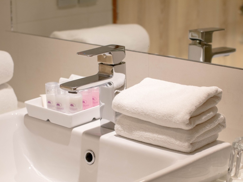 The room is warmly decorated and has everything you need to have a rest after a long eventful day. There is a mini-bar, a bathrobe and slippers. The room equipment depends on its category.