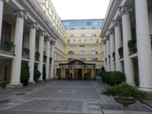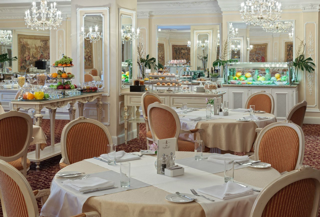The hotel's restaurant is located on Pravdy Street. The restaurant's menu focuses on Russian cuisine in its imperial version. The bar menu has a rich collection of wines, spirits and cocktails.