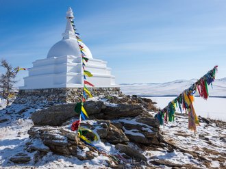 After breakfast we will visit the southern part of the island. You will see ice caves, as if from fantasy films, and learn about the types of ice. We will visit Ogoy Island, where there is a snow-white stupa of Enlightenment. Inside it are various Buddhist relics and a bronze statuette of the mother of all Buddhas. It is believed that with certain actions here you can make a wish that will surely come true. After that we will return to Irkutsk.