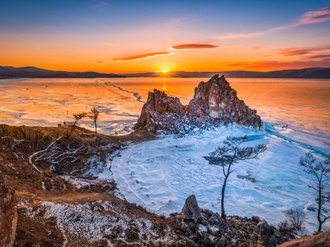 In the evening, we will arrive on Olkhon, the largest island of Lake Baikal, and walk to the sacred Shamanka rock with two peaks (Cape Burkhan), where, according to legend, the main deity of Lake Baikal lives.