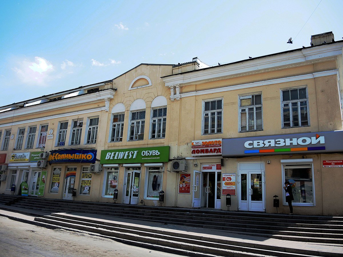 The building of the shopping malls was built in 1810 and renovated in 1950. It is a monument of urban planning and architecture of regional importance. Over the century-long history of this building, its function has not changed, it is still shopping malls (shops, shops and various companies). They are built in the neoclassical style (based on the tradition of ancient art) of eclecticism. Initially, these buildings were on one floor, but by the end of the 19th century, the second and third floors were added.
