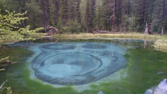 The Jumala warm spring. This rare type of thermal springs containing radon has the status of a natural monument. The area where the Jumala Keys are located is adjacent to the eastern border of the Ukok Plateau.