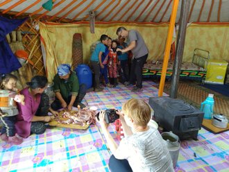09:00 - 17:00 - We go through all the formal procedures, draw up questionnaires, and here we are in Mongolia. We have a snack with Mongolian mantas (boozes) at a roadside cafe, then drive towards the border town of Ulgiy. Evening departure to the high mountain lake Tolbo Nuur. We stay in a hotel or in a yurt campsite.