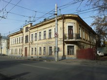 Merchant Leonov's house is located near the Scientific Center of Archeology and Restoration of the Kulikovo Field Museum-Reserve. The building was built in the middle of the 19th century. It is a two-story white brick corner building with a balcony on the corner facade. Merchant Leonov's house is classified as a national heritage site.