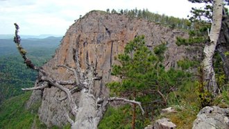 * Bolshoy Thach Mountain is one of the most beautiful and accessible mountain peaks of the Krasnodar Territory and Adygea. This is an unusual peak. It is unlike the standard cone-shaped mountains. This type of terrain is called cuesta – one part of the mountain is flat and overgrown with grass, and the other is a steep cliff. The height of the Big Thach is 2368 m.