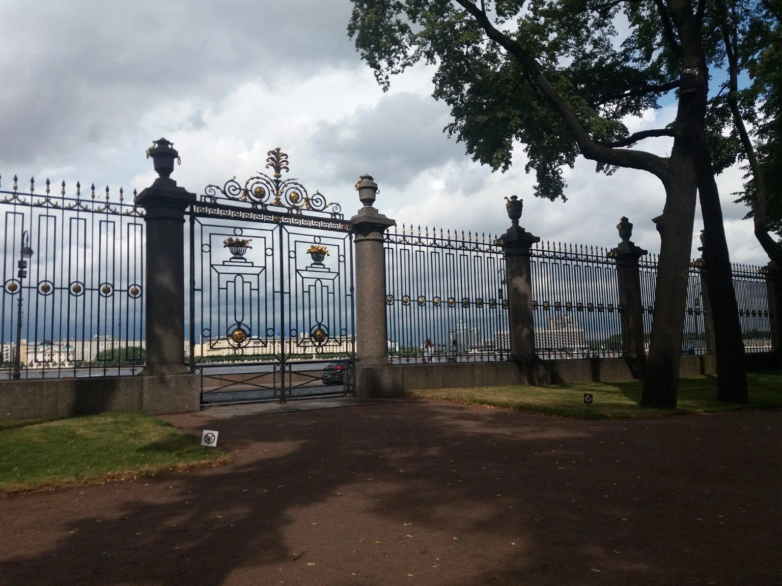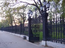 The Summer Garden is one of the favorite vacation spots of St. Petersburg residents. The park's territory is separated from the busy streets by a fence, which itself is a work of art. The park was enclosed with a grid in the eighties of the XVIII century during the reign of Catherine II. The authorship of the fence is attributed to two architects: P. Egorov and Y. Felten. A gate was installed at the entrance. The elements of the wrought-iron fence were produced at the merchant Denisov's enterprise in Tula. Granite pillars were made in Finland. The granite columns are decorated with elegant granite vases.