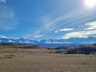 - Today we have to move 330 kilometers along the Chuisky highway to the village of Aktash. We will have a very strong energy day - for the Altai people, the passes and river confluences are sacred places where they worship the spirits of nature. Today we will see the snow-capped peaks of the North Chuisky range.