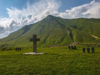Предстоит небольшая пешая часть длиной 3 км. с набором высоты 380 метров, от которой вы можете отказаться и побыть около автомобилей.