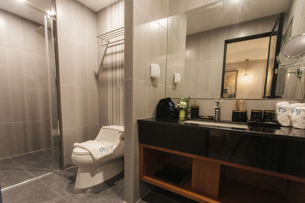 In the room, for you, there is a shower, a TV, a mini-bar, a bathrobe and slippers. Please note that the listed services may not be available in all the rooms.