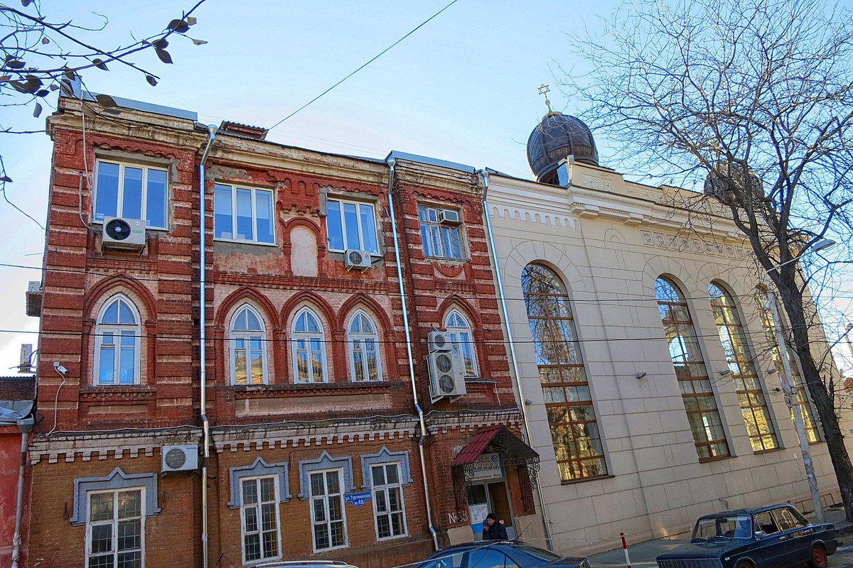 A monument of urban planning and architecture is the M.L. Guryev Apartment Building, which housed the spiritual board of the Soldiers' Choral Synagogue in Rostov-on-Don, located on Turgenevskaya Street. The building was built at the end of the 19th century. The facade features brick decorative elements typical of the pseudo-Gothic eclecticism. The building is rectangular in plan, three-storeyed with a basement, a gable roof, brick.