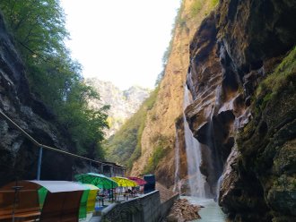 If you want to escape from the crazy rhythm of modern life and see something unusual, be sure to visit this location. The cliffs reach about 300 m in height in a narrow gorge, where the width in some places is no more than 15 m. The power of this natural phenomenon is staggering! "The earth is broken" is how the name Chegem translates, and mountain faults, going high up, cry with beautiful waterfalls Adai–Su ("Water from the mouth), "Maiden spit", Azai-Su ("Round water"), Costa-Syrt, etc. The spray from the streams of waterfalls spreads for several meters. You can stand next to the waterfall under its spray and see a rainbow, make a wish. You will feel the energy of the mountains. The Chegem waterfalls will surprise you at any time of the year. You can feel the local flavor everywhere: souvenirs, natural wool products... And the inviting smell of barbecue, smoke from barbecues all over the gorge will definitely lead you to one of the cafes where you can enjoy the local cuisine. Then visit the Geduko wellness complex. People come here for their health and longevity. You will have the opportunity to get acquainted with the exceptional properties of "living water", which promotes general wellness, rejuvenation, weight loss and nourishes vitality, relieves tension and fatigue, improves the state of the emotional sphere.