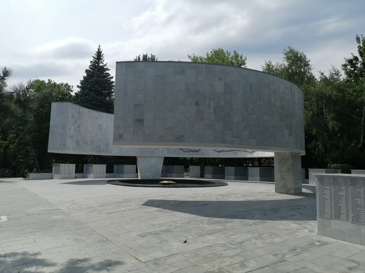 The Monument to Fallen Soldiers is a monument with an eternal flame in Frunze Park on Karl-Marx Square in Rostov-on-Don. It is dedicated to the soldiers and citizens who died in the Great Patriotic War. The memorial was opened in 1969. The memorial to the Fallen Wars is included in the list of cultural monuments of the region. The memorial is a huge concrete semicircle mounted horizontally on two pillars. According to the author of the memorial, the half-ring symbolizes a cruelly cut short life. Inside there is an engraving with the image of the mother's Homeland, in her hand she holds a laurel branch. An eternal flame burns in the center of the ring.
