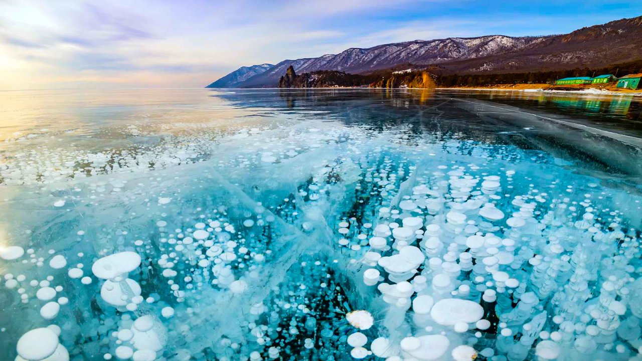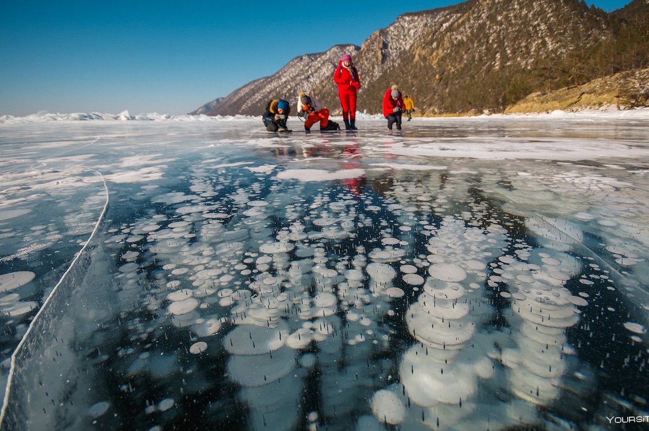 Bubble ice of Lake Baikal and the place of power of Bolshoy Goloustnoye
