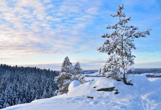 And then we will climb one of the picturesque mountains of Karelia - Paasonvuori, which offers a stunning circular view of the snow-capped tops of fir trees and a frozen lake. A comfortable wooden staircase with very atmospheric lighting leads up to the mountain.