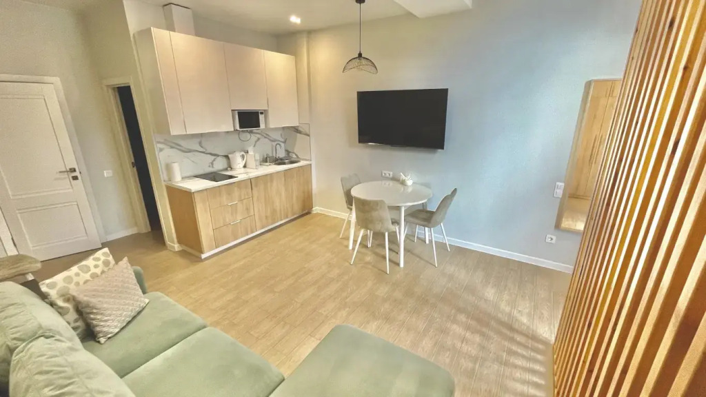 Free Wi-Fi on the territory will help you to stay on-line. Specially for tourists who travel by car, there’s a parking zone. The staff of the apartment will order a transfer for you. Additional services that the apartment offers to its guests: ironing.