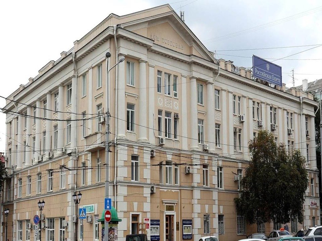 The house was built in 1954. The architectural style was defined as "classicism". The building is located at the intersection of Moskovskaya Street and Soborny Lane. The building is a four-storey building made of white stone. Currently, there is a store on the ground floor of the building, the rest are residential. Nearby are the Church of St. John the Baptist, the apartment house of A.N. Frumson and the apartment house of P.V. Khakhladzhev.