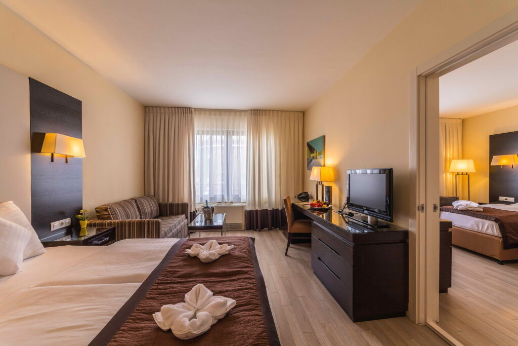 In the room, for you, there is an alarm clock, a shower, a TV, a mini-bar and slippers. Please note that the listed services may not be available in all the rooms.