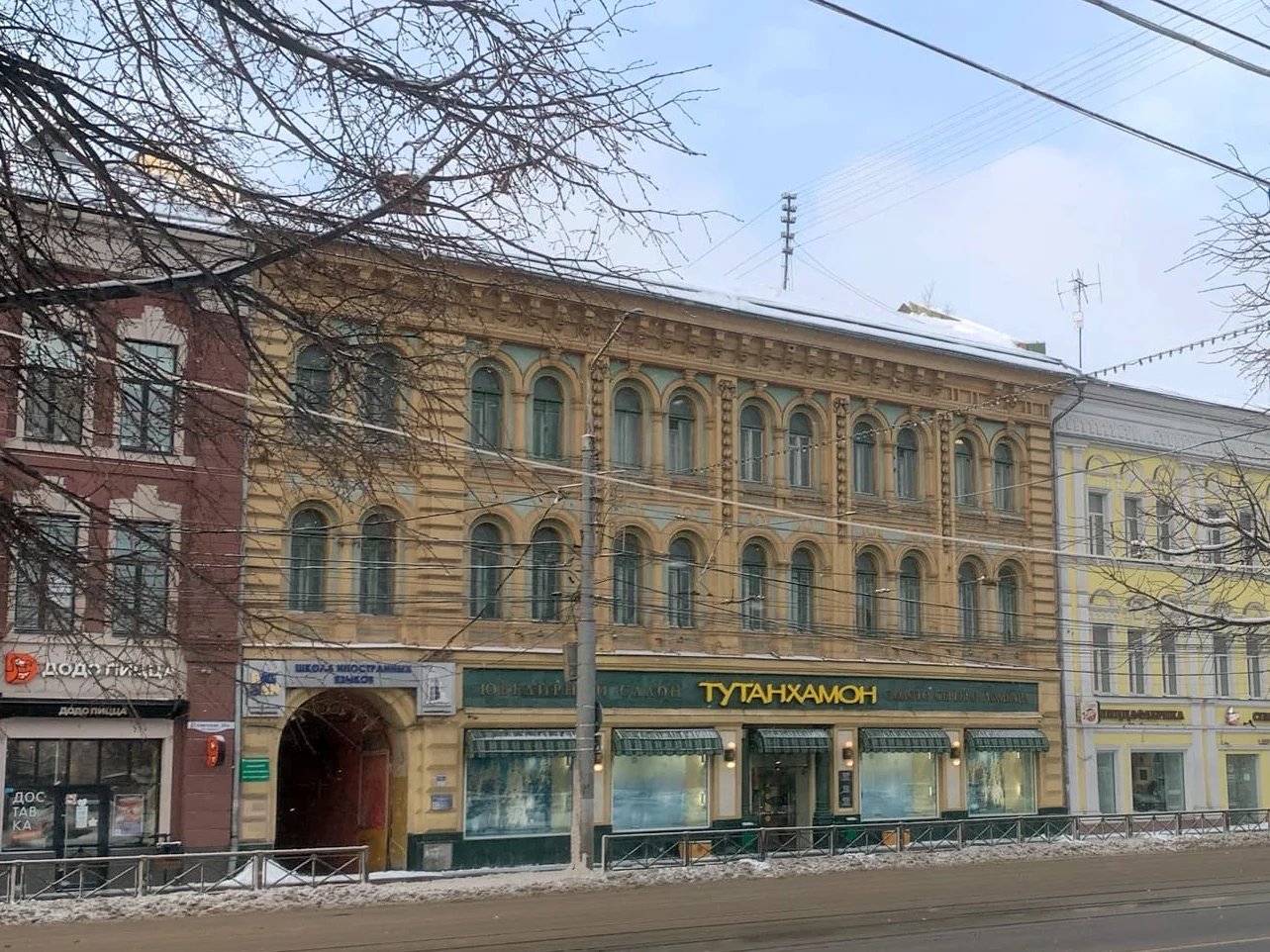Filippov's baker's house is located near the observation deck. The building was built in the middle of the 19th century. In 1869, the bakery of the famous merchant Filippov Ivan Maximovich was opened here. Subsequently, a stone extension was erected, stucco decorations were made on the second floor of the building, the ceiling was painted and a stucco border was created in the hall. Some of the rooms on the upper floors of the house were rented out as apartments.