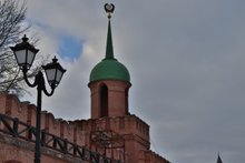 The appearance of the coat of arms has changed over the centuries. In 1918, a new national symbol of workers and peasants, the hammer and sickle, was erected on the Odoyevskaya Tower, replaced in 1965 by a gold metal flag. The coat of arms of the city of Tula was installed here in May 1969.