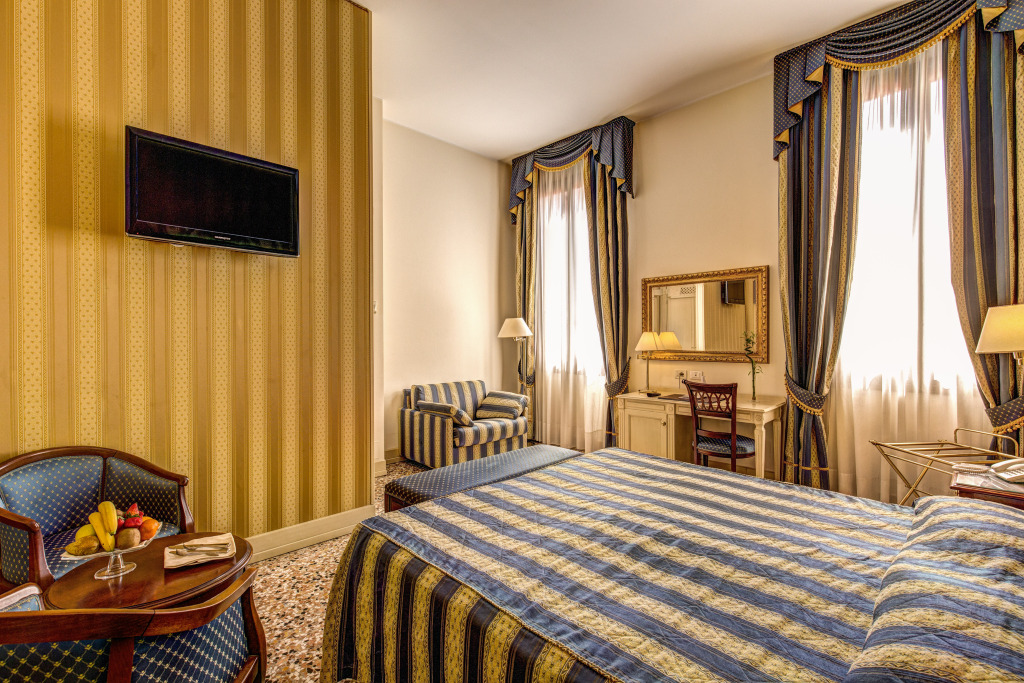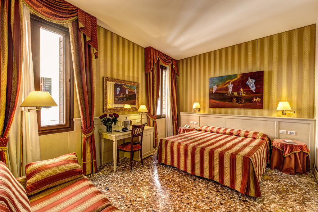 Good choice if you’re looking forward to taking some rest at the hotel as much as to walking around the city. Hotel «Hotel Bella Venezia» is located in Venice. This hotel is located in the very center of the city. Before going to bed, you can walk around the main landmarks of the city. You can take a walk and explore the neighbourhood area of the hotel — Palazzo Contarini del Bovolo, Rialto Bridge and Teatro La Fenice.