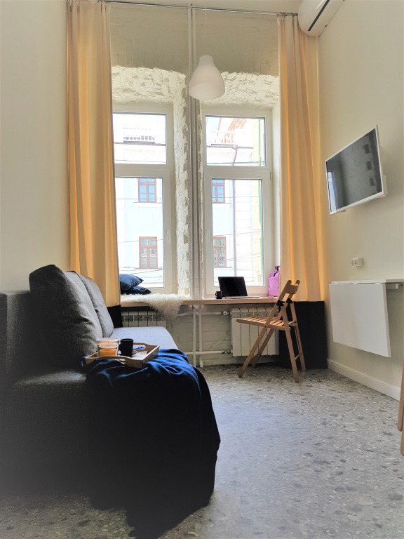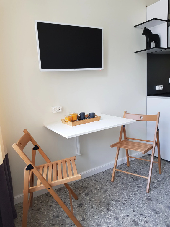 Want to be always on-line? Wi-Fi is available. If you travel by car, there’s a free parking zone. At the guests’ disposal, there’s also ironing. The staff of the apartment speaks Russian.