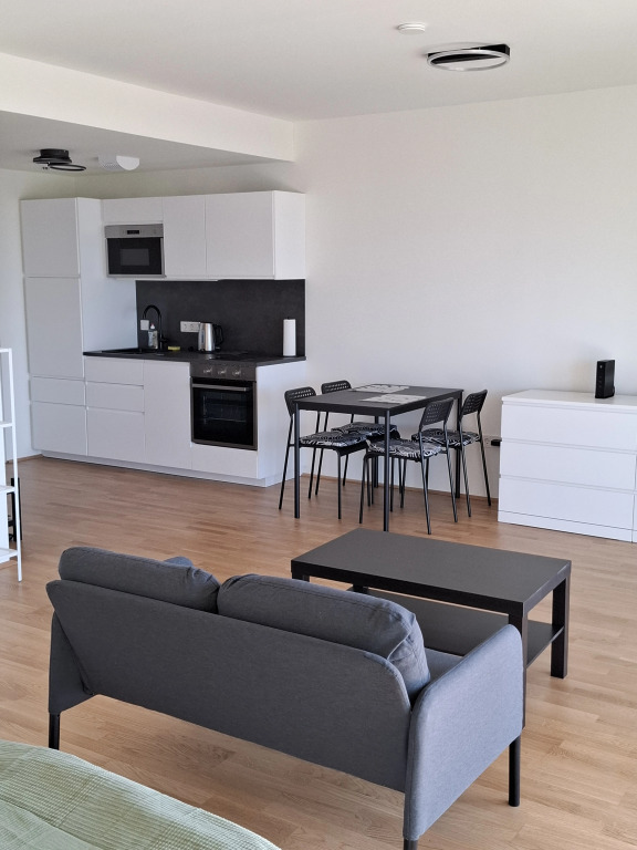 Free Wi-Fi is available. Free underground parking is available in the adjacent building. The house has a gym, which can be used at no extra charge. The flat has a refrigerator, washing machine, dishwasher, microwave, stove, oven, iron, ironing board, clothes dryer, kettle and dishes. The balcony offers views of the Viennese Forest and the Danube.
