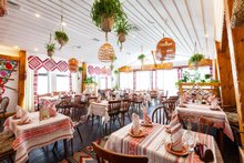 The restaurant on Pyatnitskaya Street. In the restaurant, you can appreciate dumplings and dumplings, which are served in clay, painted bowls, shiny with glaze. There is cooking, homemade pies with apples, plums, cherries, apple strudel, flower honey, sorbets and a large selection of cakes are prepared. Food can be ordered with home delivery.