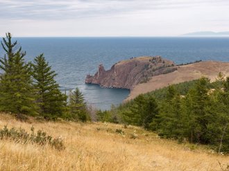 Then we will climb the Trident rock complex, covered with bright green lichen and resembling a dilapidated medieval castle with towers. It offers a charming panorama of Hull Bay. If the weather is right, we will swim in Yalga Lake. It is separated from Lake Baikal by a sandy spit and warms up well in summer — take your swimsuits with you.