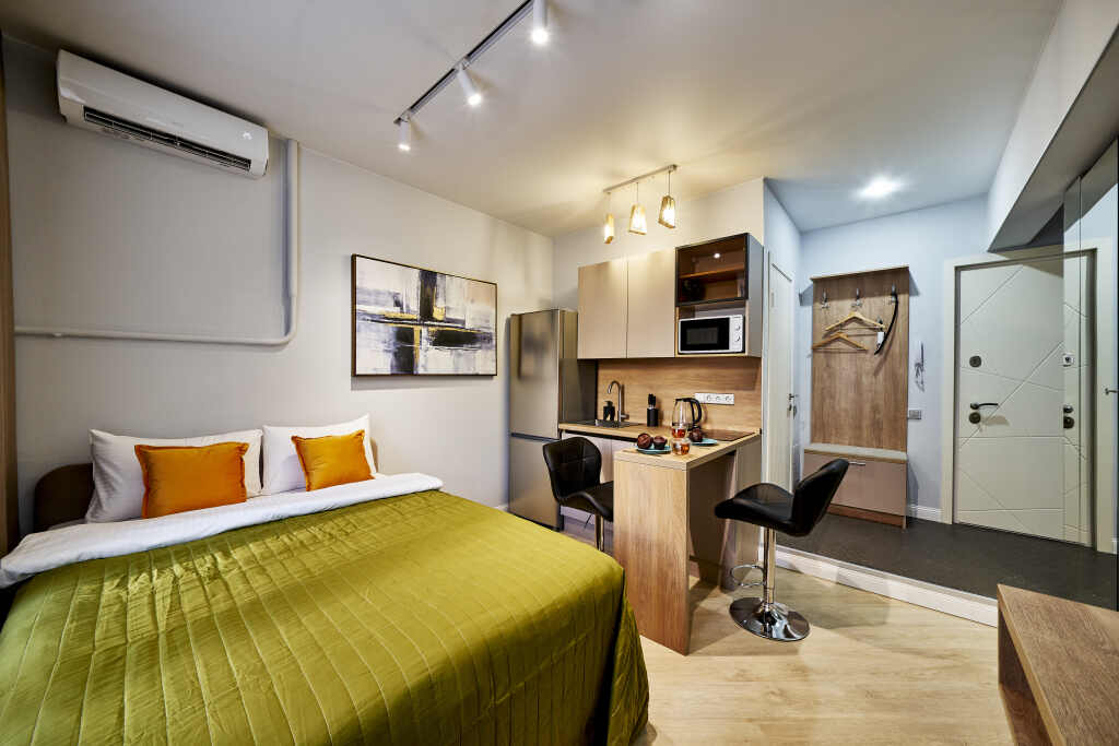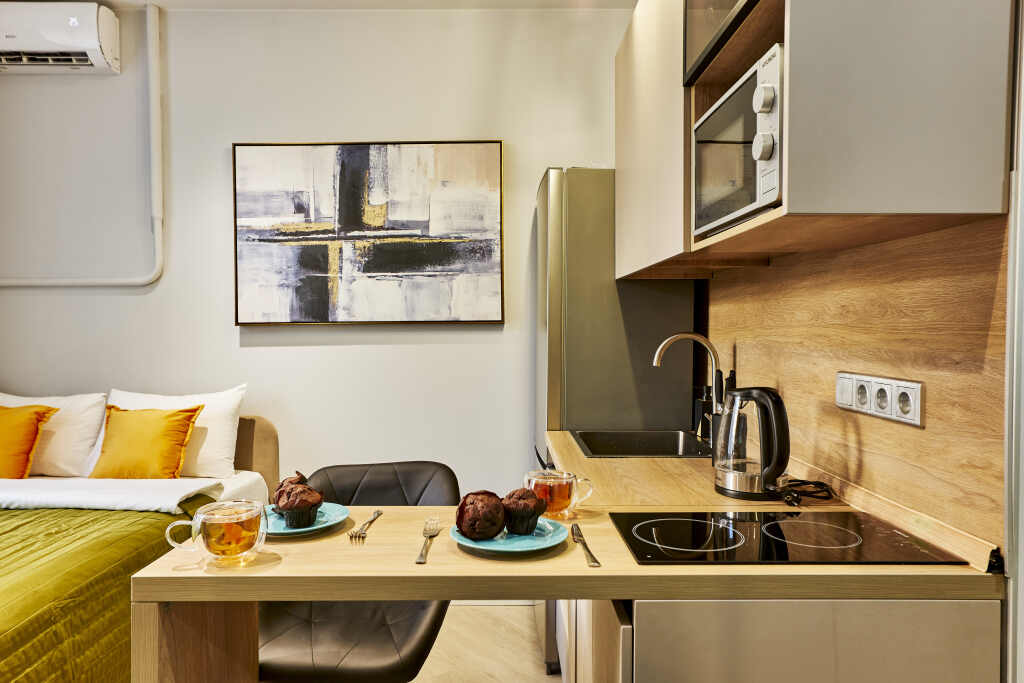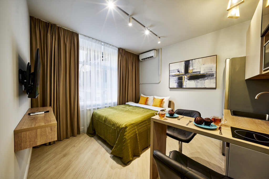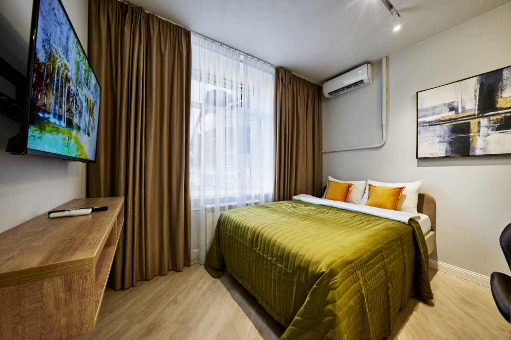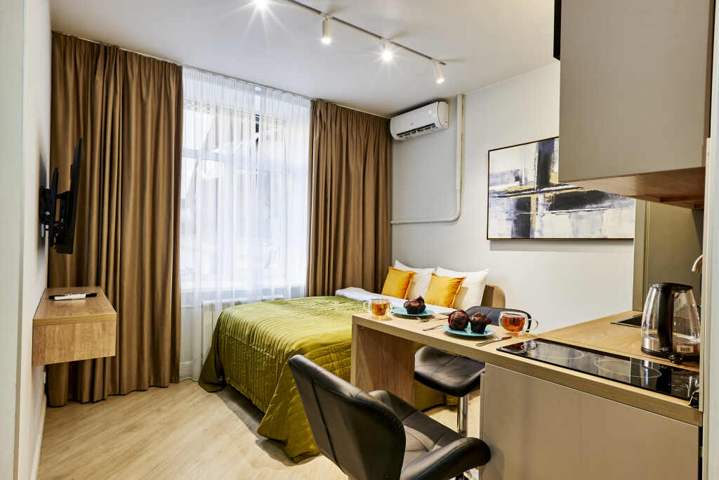 Want to be always on-line? Wi-Fi is available. At the guests’ disposal, there’s also ironing. The staff of the apartment will be happy to talk to you in English and Russian.