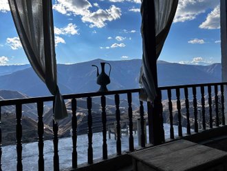 We will admire the magnificent view of the Gunib hydroelectric power station and the series of tunnels drilled into the rocks on the way from Gunib. The combination of stone and water is very picturesque in this particular location.
