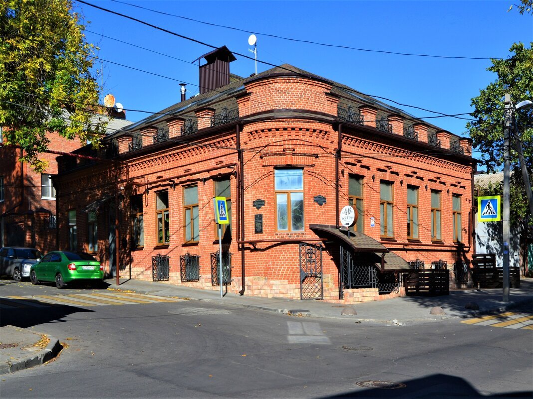 The mansion was built by Russian businessman E. T. Paramonov at the end of the 19th century. The interior of the building uses decorative elements of neoclassical eclecticism. The L-shaped mansion, built in plan, has a high ground floor with a multi-pitched roof. The courtyard annex has two modern vestibules for storing things in the courtyard. The facade of the house is located along the street and the alley. It is dominated by an angular arched facade with shoulder blades, culminating in an attic with a stepped central finial and a luxury. The architectural appearance of the mansion is dominated by austere brick.