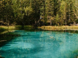 Amazing geyser lake, Altai Mars and picturesque views of ancient glaciers and an evening bath