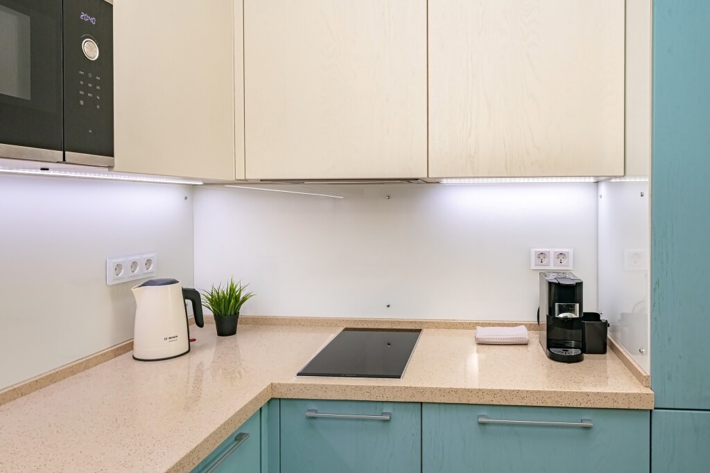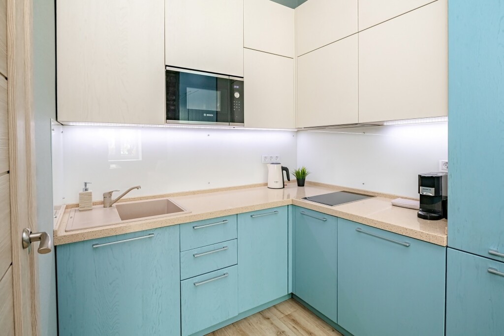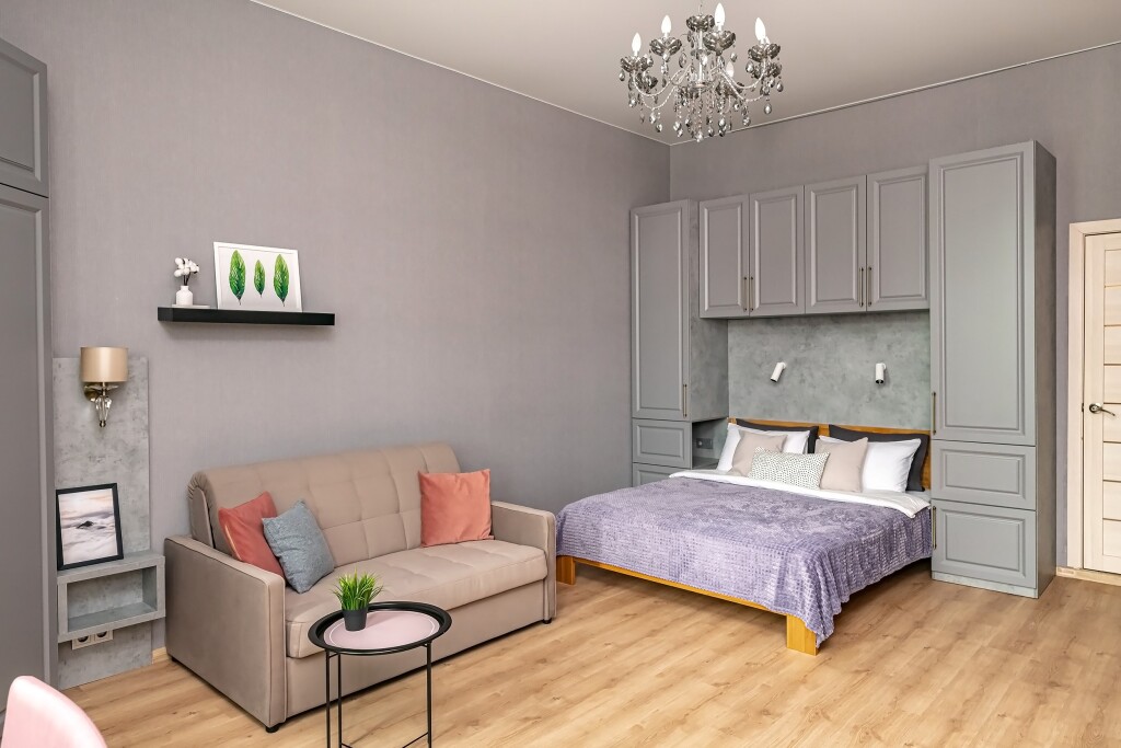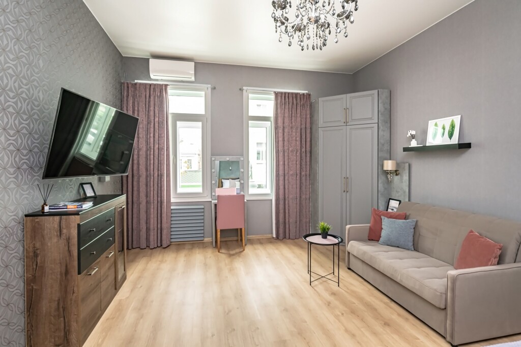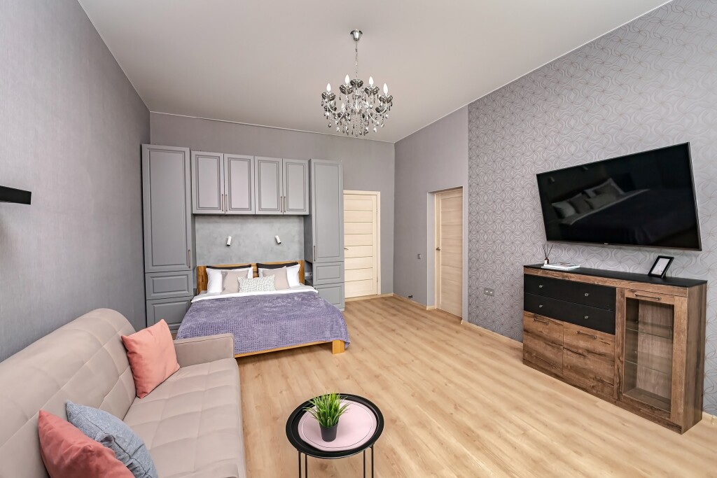 Free Wi-Fi on the territory will help you to stay on-line. At the guests’ disposal, there’s also private check-in and check-out and ironing. The staff of the apartment speaks Russian.