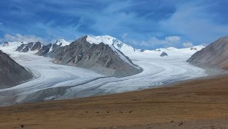 The next morning we start moving to the Potanin Glacier, to the base camp at the 3,140 m pass, near the Tabyn-Bogdo-Ola massif. The pass offers an excellent mountain panorama, headed by the Kuyten-Uul peak (Nairamdal), 4374 m, the highest point of Mongolia. The largest glaciers in Altai, Potanin (19 km) and Alexandra (10.8 km), drain from the Tavan-Bogdo-Ula massif. Overnight at the campground.
