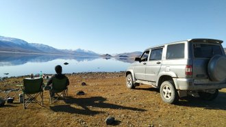 The main task for today is to get to Mongolia. We go through all the formalities of the migration services. And here we are in Mongolia. Snack on delicious Mongolian mantas (boozy) in the roadside cafe of Ulaanbaishint village (Red Yurt). We continue moving towards the border town of Ulgiy. Evening departure to the high mountain lake Tolbo Nuur. Overnight in the Mongolian city of Ulgiy at a yurt campsite on the banks of the Khovd River.