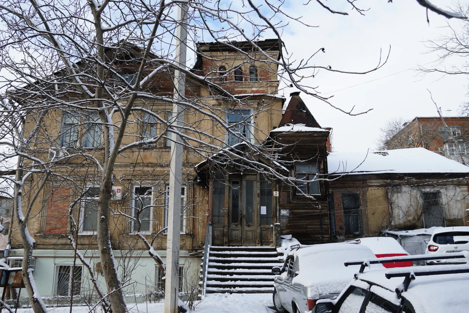 More than 130 years ago, the three-storey house No. 3 on Chekhov Avenue was built, erected by a Belgian merchant who moved to Rostov. The house was inhabited by several foreign families, but they emigrated over time and the building was renovated. Of the 15 apartments located in building No. 3a, one is located separately in building "b", which was a former stable. The residents of this house have collected "alarming suitcases", as they fear that the ancient wooden floors may collapse. Rostov residents like to do photo shoots on the porch of this house.