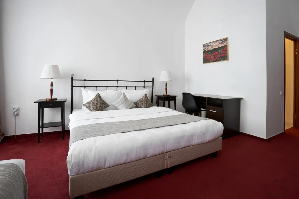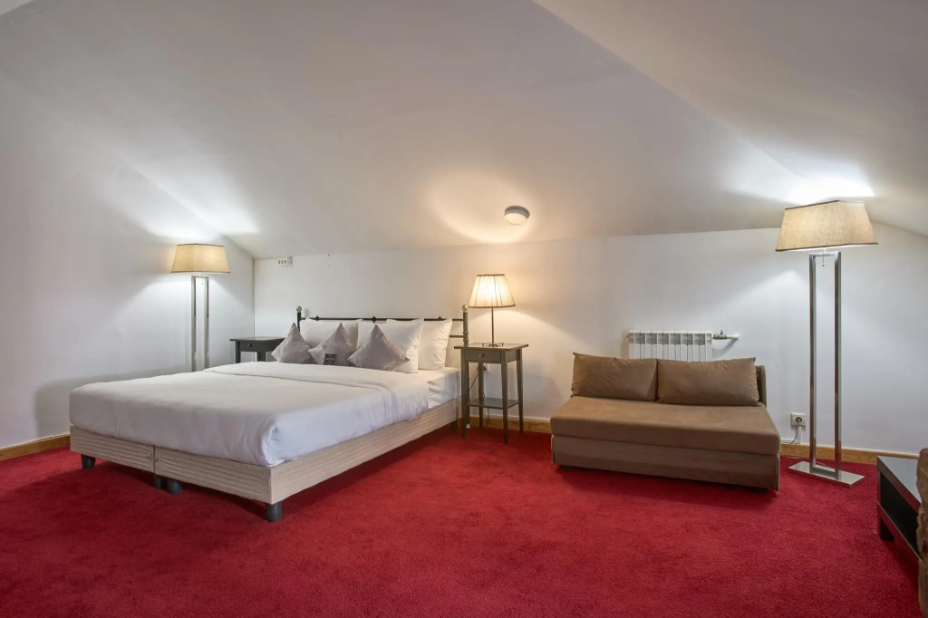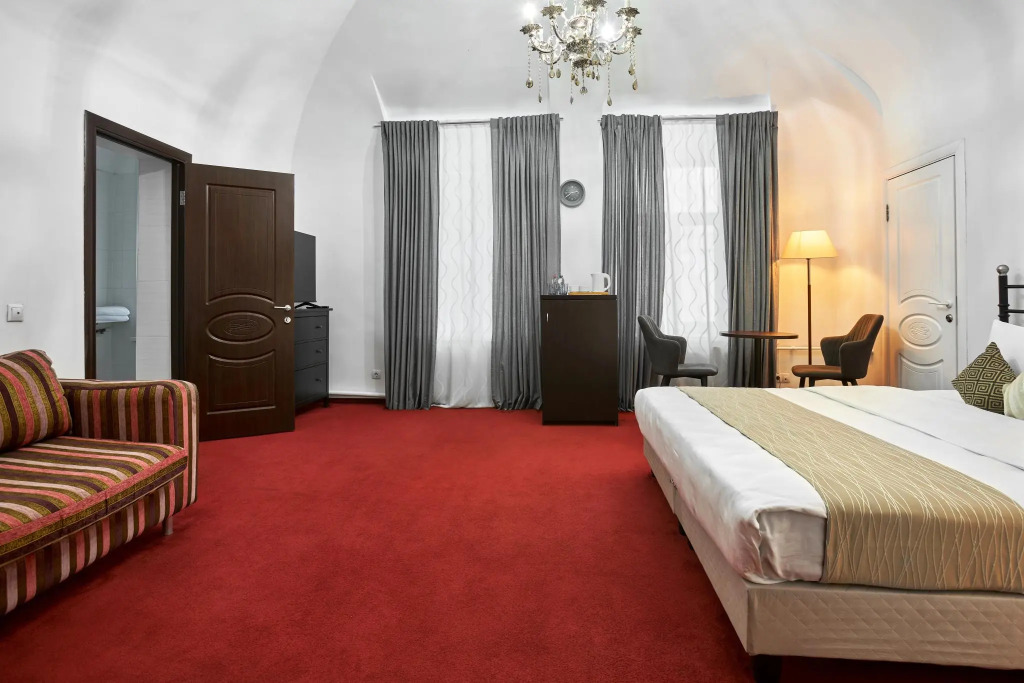 Номер уютно обставлен и оснащён необходимым, чтобы отдохнуть после долгого и насыщенного дня. Имеются телевизор, мини-бар и халат. Оснащение зависит от выбранной категории номера.
