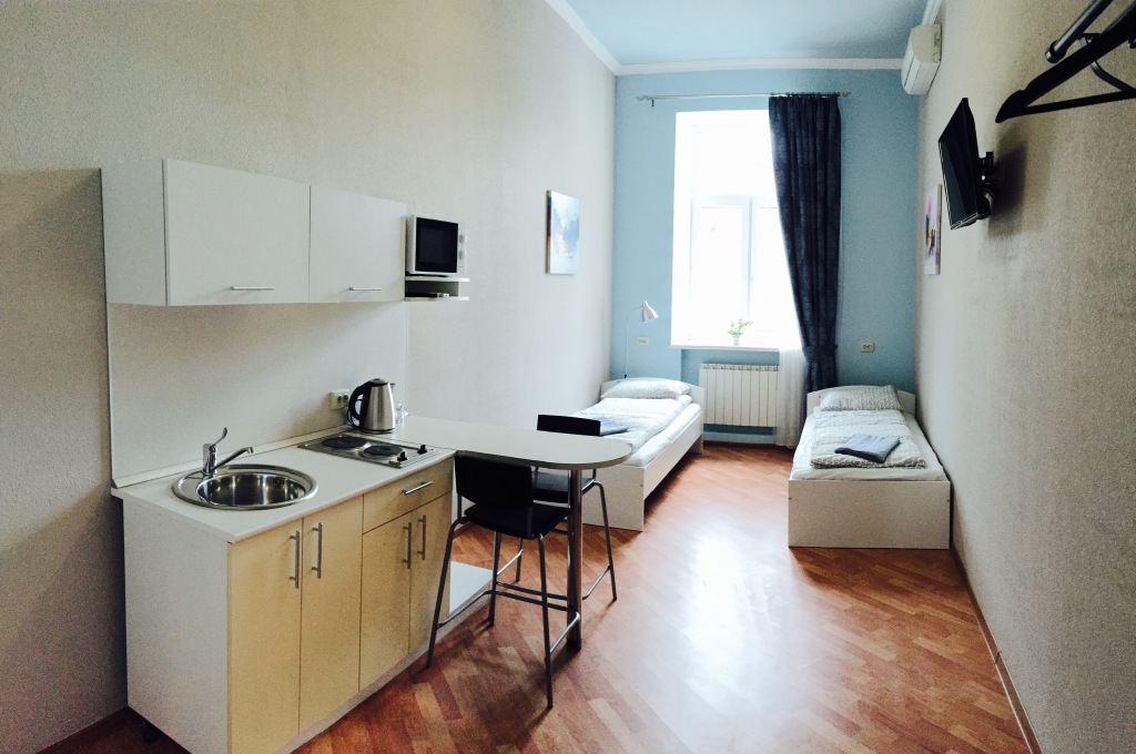 Russian citizens must have an original Russian passport upon arrival. Front desk is open 24/7. A complete set of reporting documents for accounting is provided upon request. Children under 6 years stay free of charge. Complex breakfasts are available for an additional charge upon prior reservation. Breakfast should be ordered in advance before 9:00 PM. In case of late arrival, guests can order breakfast by the phone. The apartments are located in the first entrance, entrance from the yard. On the second level there are: one-bedroom apartment with shared bathroom, standard apartment for 3 guests, superior apartment with double bed and sofa, and superior apartment for 4 guests. Pets weighing no more than 4 kg are allowed for an additional fee. The cost of accommodation with a cat is RUB 500.00, with a dog is RUB 1000.00.