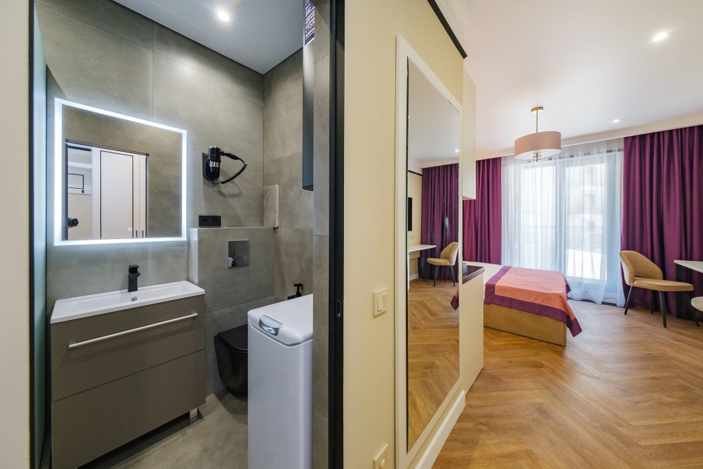 The best kind of vacation is when you come somewhere new and it feels like home: apartment «Standart Deluxe Apartments» is located in Sochi. This apartment is located in 14 km from the city center. You can take a walk and explore the neighbourhood area of the apartment. Places nearby: Central Beach, Beach of the sanatorium Khosta and Akhun Tower.