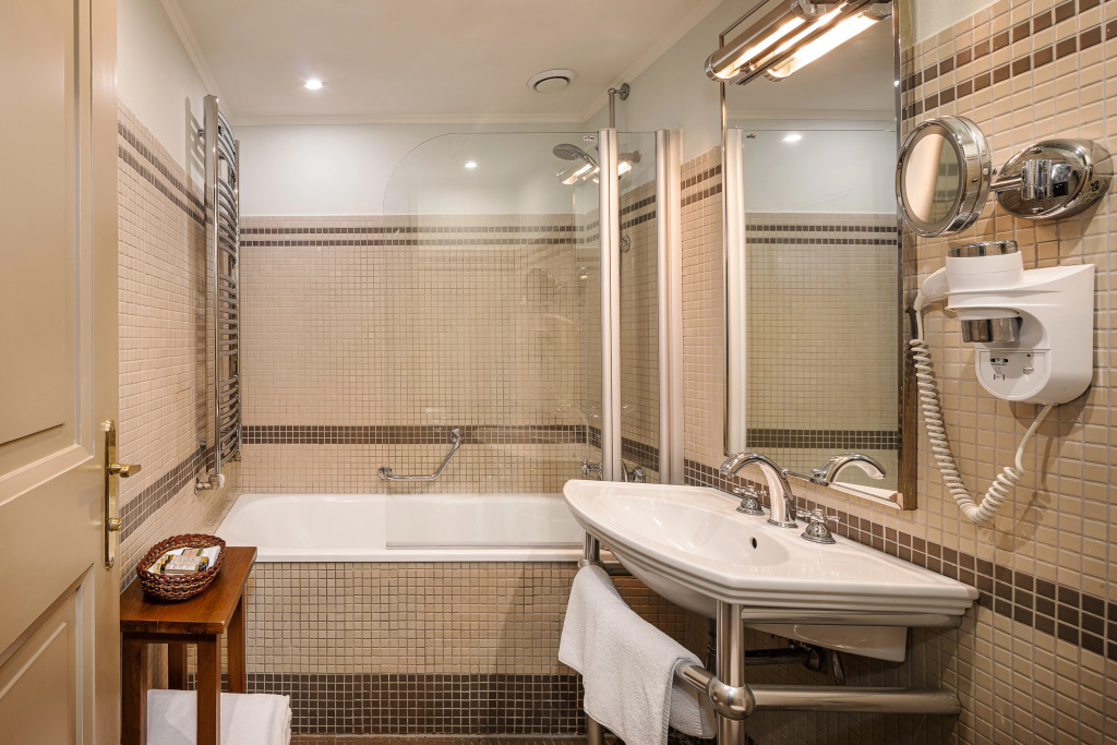 Here’s what you’ll find in the room to have a rest after a long day: a TV, a mini-bar, a bathrobe and slippers. The room equipment depends on its category.