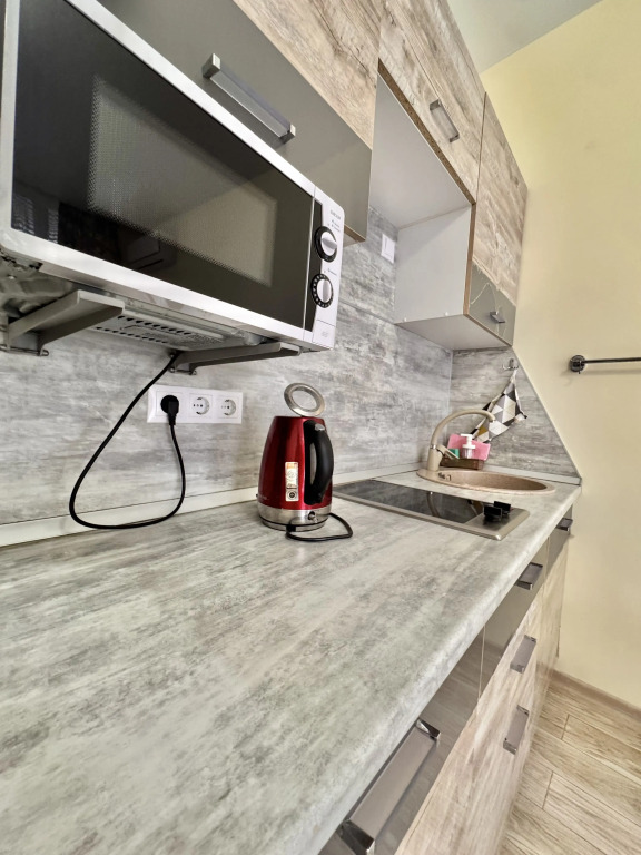 If you want to feel like you’re at home no matter where you are, choose this — apartment «Delfin ZhK 31» is located in Sochi. This apartment is located in 21 km from the city center. You can take a walk and explore the neighbourhood area of the apartment — Ogonyok-2 Beach, Vagonnoye Depo Beach and Chayka-1 Beach.