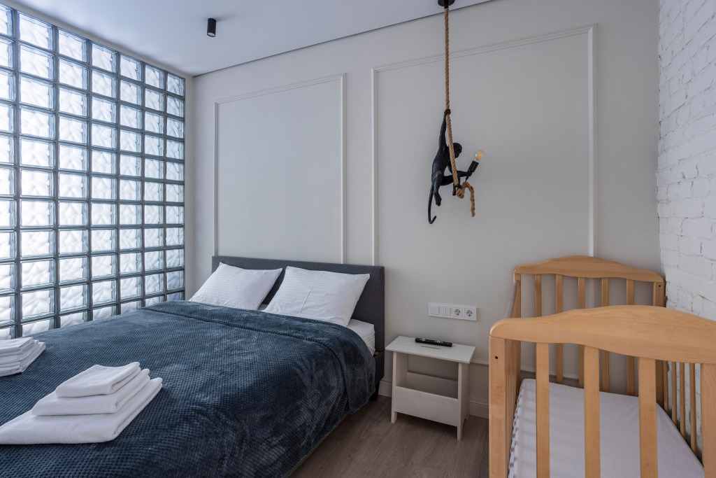 The apartment is equipped with everything necessary for a comfortable stay of guests: there is a full set of appliances, including a TV and household appliances.