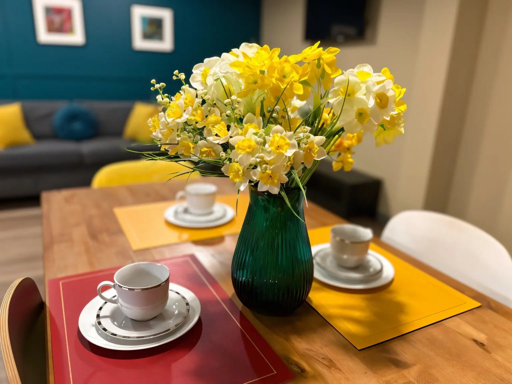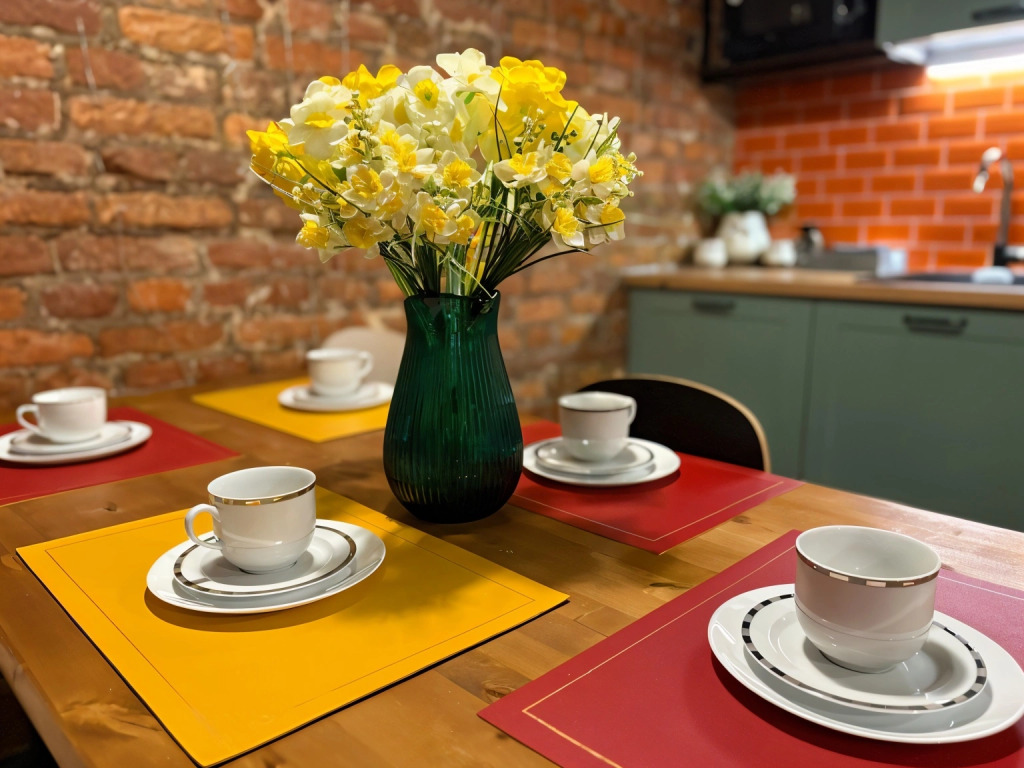 There is an elevator, the main entrance is from Nevsky Prospekt. The windows overlook the courtyard. The apartment has three separate bedrooms, a living room with a large table and a double sofa, a kitchen. The first bedroom has a double bed and a folding armchair bed. The second bedroom has a double bed. The third bedroom has a double sofa bed and a cot. The apartment is equipped with a refrigerator, washing machine, dishwasher, gas stove, electric oven, coffee maker, electric kettle, microwave oven, dishes. The living room can accommodate up to 9 people at one table. The apartment has free Wi-Fi, a smart TV in the living room and one of the bedrooms. Guests are provided with bed linen, towels, personal hygiene products, hairdryer, ironing board, iron, clothes dryer.