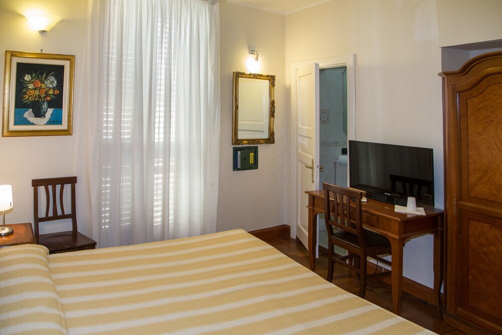 Here’s what you’ll find in the room to have a rest after a long day: a shower, a TV and a bathrobe. Please note that the listed services may not be available in all the rooms.